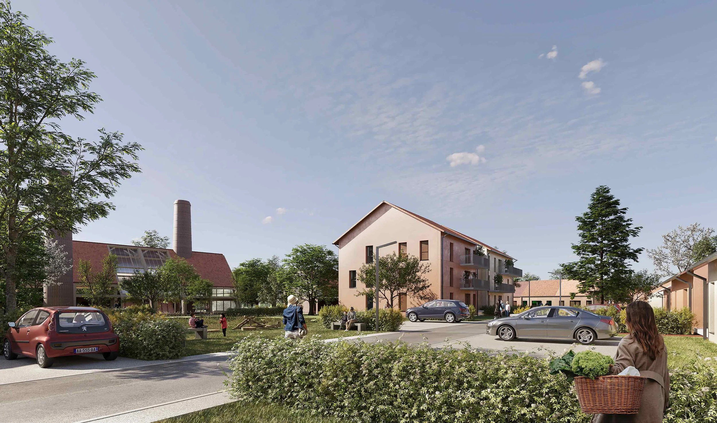 Un projet qui prolonge le village, en s’inscrivant dans la continuité du paysage et des formes bâties existantes. Une composition à échelle domestique, alternant maisons et petits collectifs autour d’espaces partagés. Une architecture sobre et ancrée, où le végétal structure les lieux de vie et accompagne les usages quotidiens.