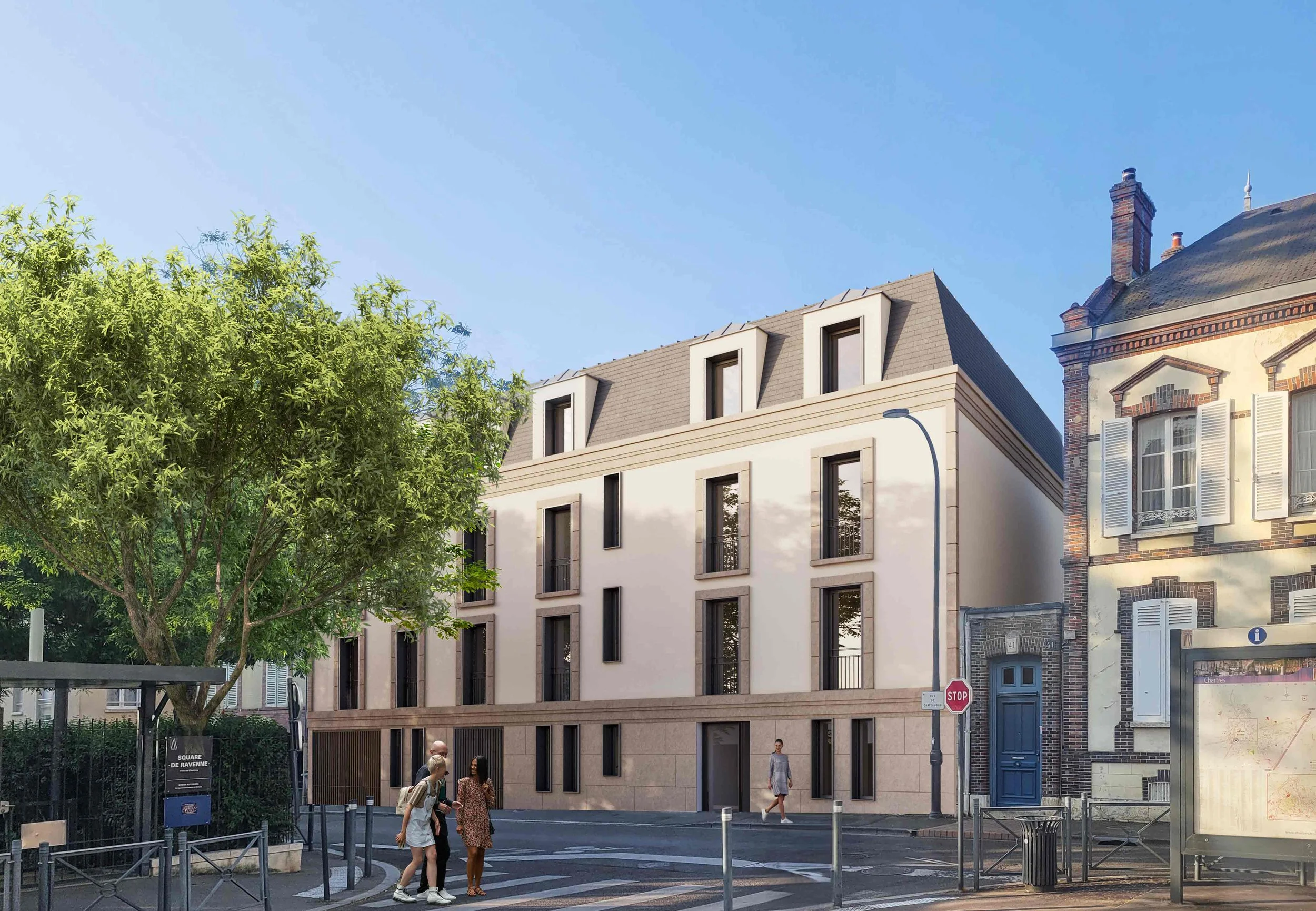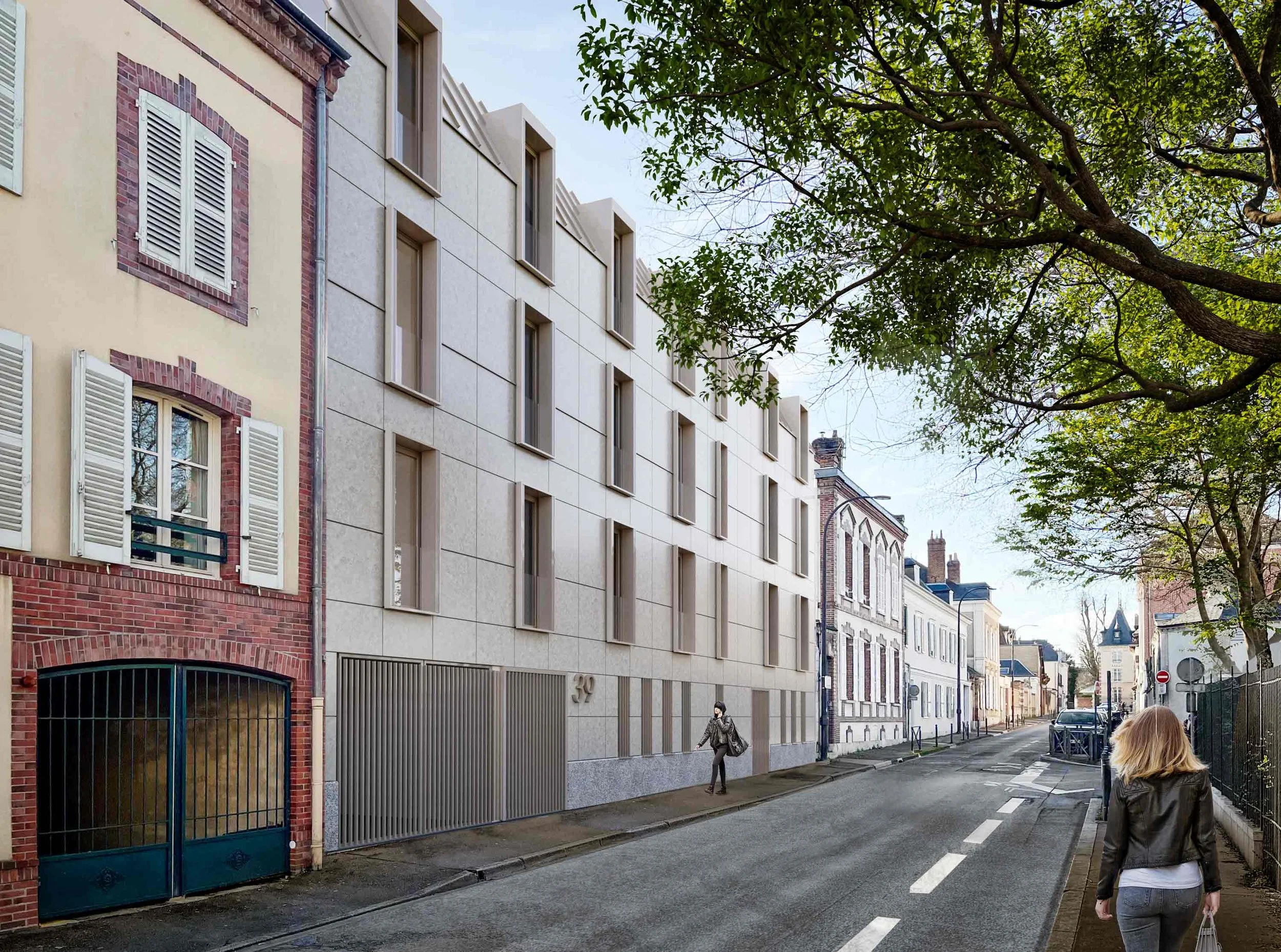 Une intervention mesurée, qui s’inscrit dans le tissu existant en prolongeant ses rythmes et ses proportions. Une architecture de façade travaillée dans l’épaisseur, où modénature et percements composent une écriture contemporaine et discrète. Des logements ouverts sur un cœur d’îlot végétalisé, offrant un cadre de vie apaisé en dialogue avec la ville.