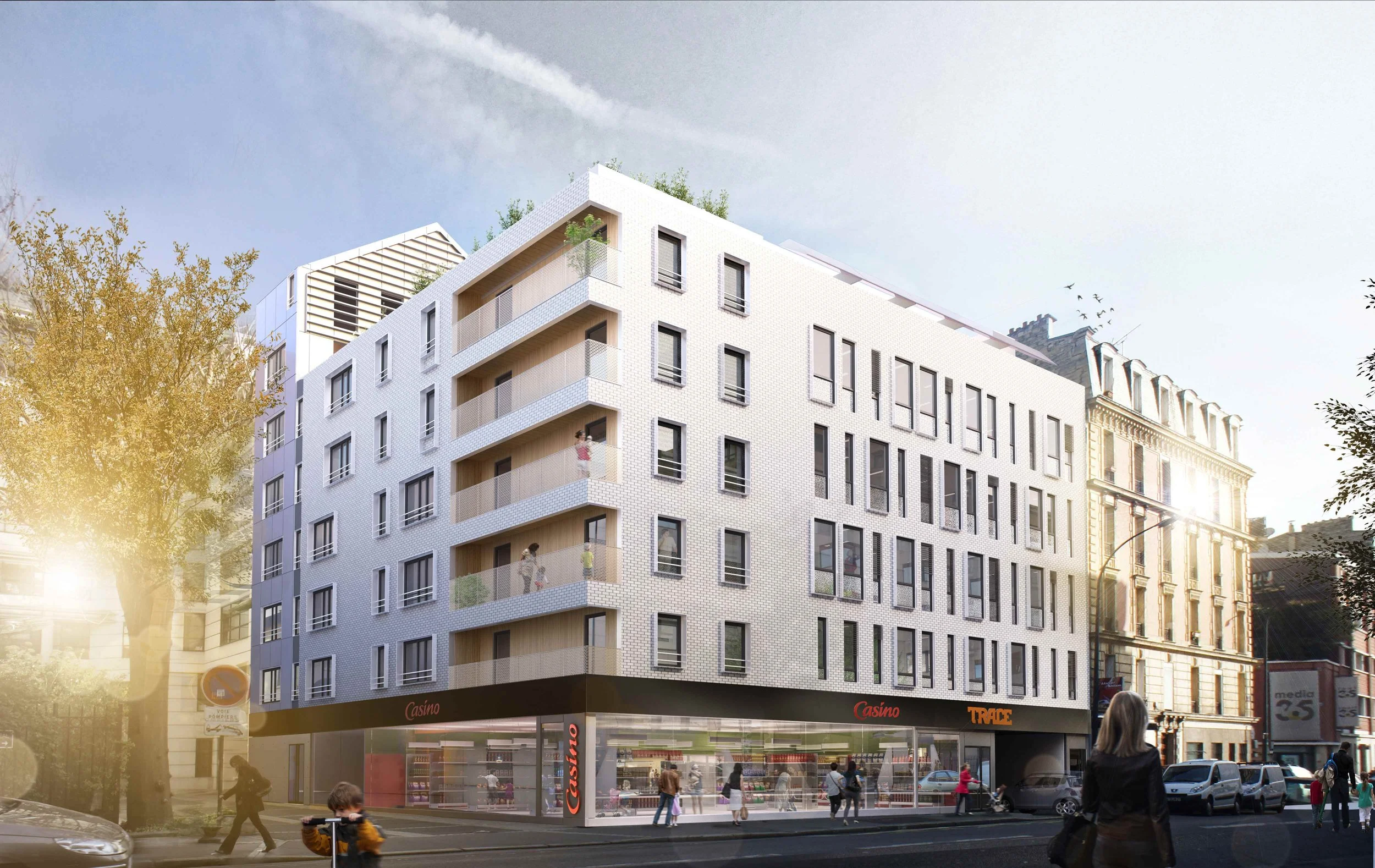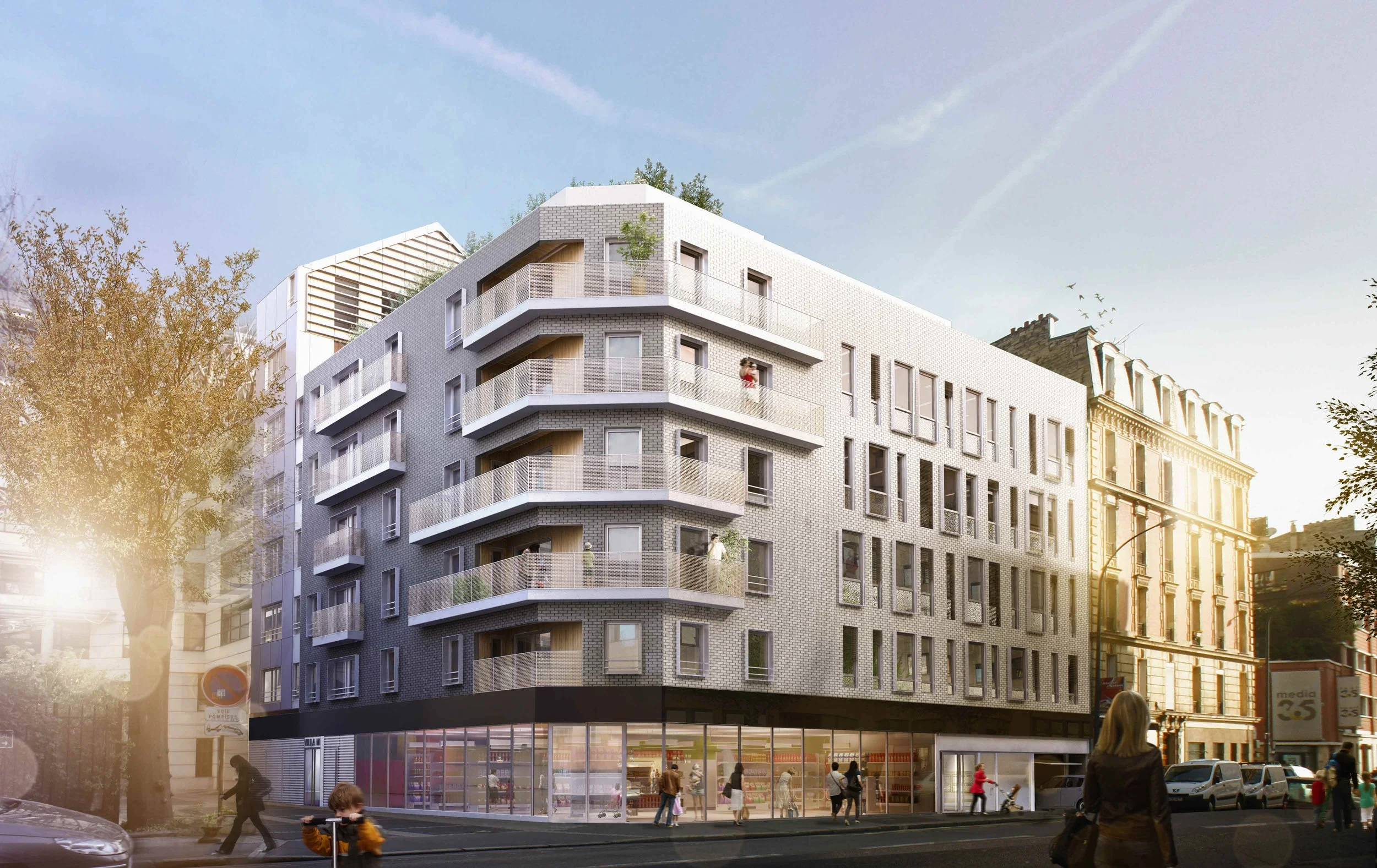 Programme : construction neuve de 32 logements et commerces sur 2 niveaux d’infrastructure dans le centre-ville de Clichy